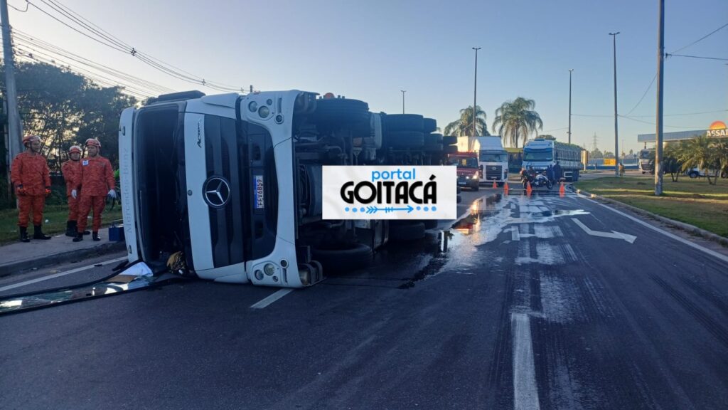 Uma carreta carregada com cosméticos tombou na manhã desta quinta-feira (19) no Trevo do Índio, próximo ao Parque Rodoviário, em Campos dos Goytacazes, no Norte Fluminense. O veículo seguia de São Paulo com destino ao Espírito Santo.