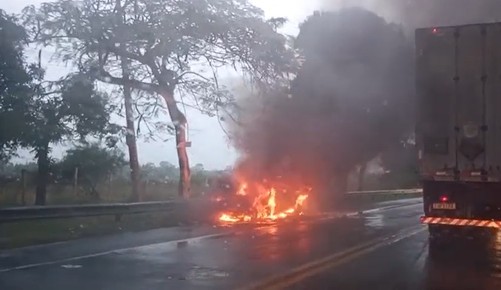 Um carro foi tomado pelas chamas na tarde desta terça-feira (2), na altura da localidade da Tapera, em Campos dos Goytacazes, Norte Fluminense. O incêndio ocorreu em plena BR-101 e chamou a atenção de motoristas que passavam pela rodovia.