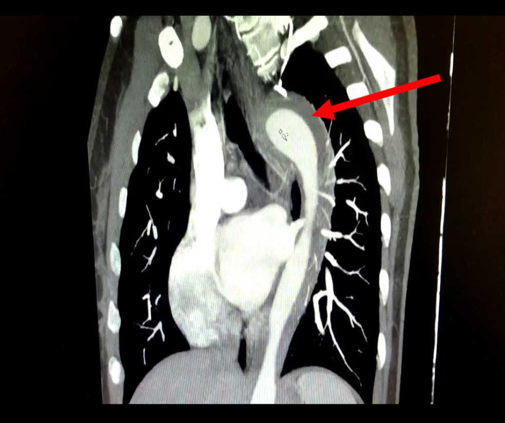 Segundo os médicos que atenderam o caso, a paciente tinha hipertensão não tratada há um ano e tabagismo há 17 anos. Para entender o que aconteceu, ela passou por exames de imagem que indicaram hematoma intramural na aorta.
