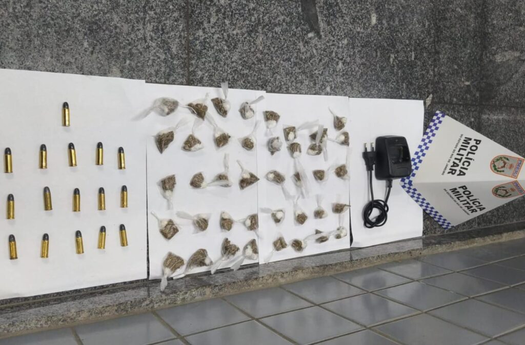 Foram apreendidas 40 buchas de uma substância com características de maconha e 16 munições de calibre 12, todas intactas.