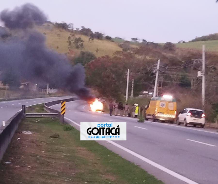 Um carro pegou fogo na manhã desta segunda-feira (28) no km 85 da BR-101, na altura de Ibitioca, em Campos dos Goytacazes, no Norte Fluminense. O incidente ocorreu por volta das 5h57 e, segundo a concessionária Arteris Fluminense, ninguém ficou ferido.