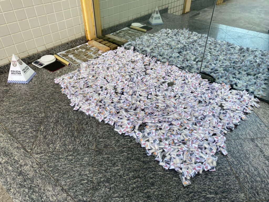 A guarnição da 3ª Companhia recebeu informações de que os suspeitos estariam no local torturando um usuário de drogas e portando entorpecentes. Durante a abordagem, os policiais encontraram 1.455 pinos de cocaína, 47 buchas de maconha, tabletes da mesma substância, além de balança de precisão e celulares.