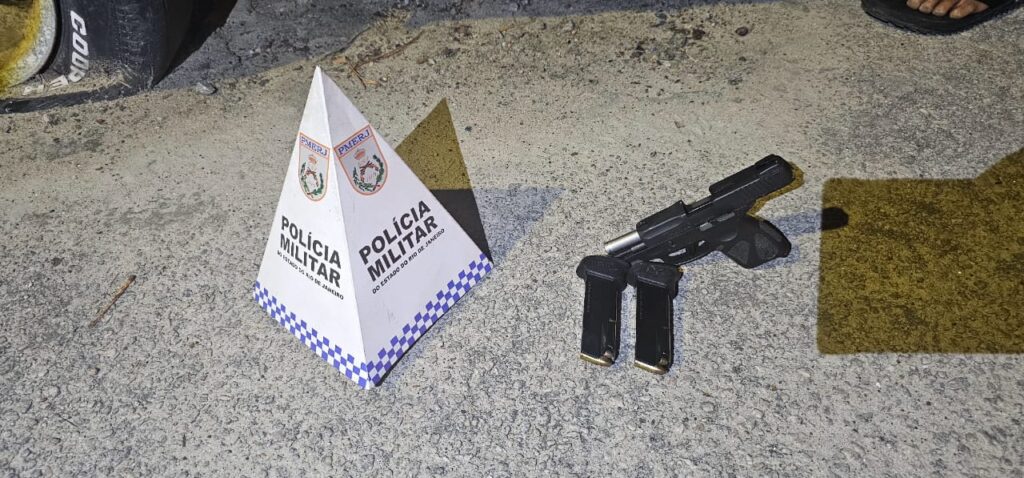 Ao perceber a presença da viatura, o homem tentou fugir, pulando muros de várias casas e se escondendo em um terreno baldio. No entanto, foi cercado e capturado. Com ele, os policiais encontraram uma pistola Taurus PT111G2C, calibre 9 mm, dois carregadores e 24 munições, além do botijão de gás furtado.