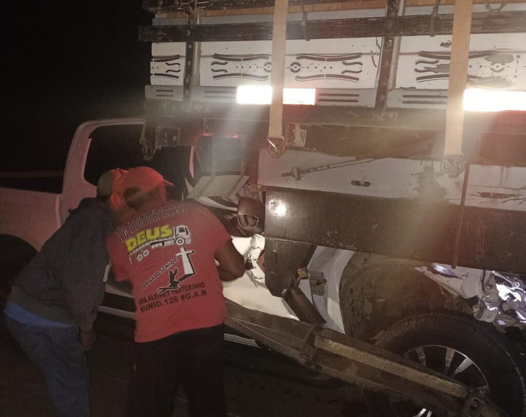 Um homem ficou ferido após a caminhonete que dirigia colidir na traseira de um caminhão, na noite desta segunda-feira (18), na RJ-216, na altura de Campo Limpo, na Baixada Campista.