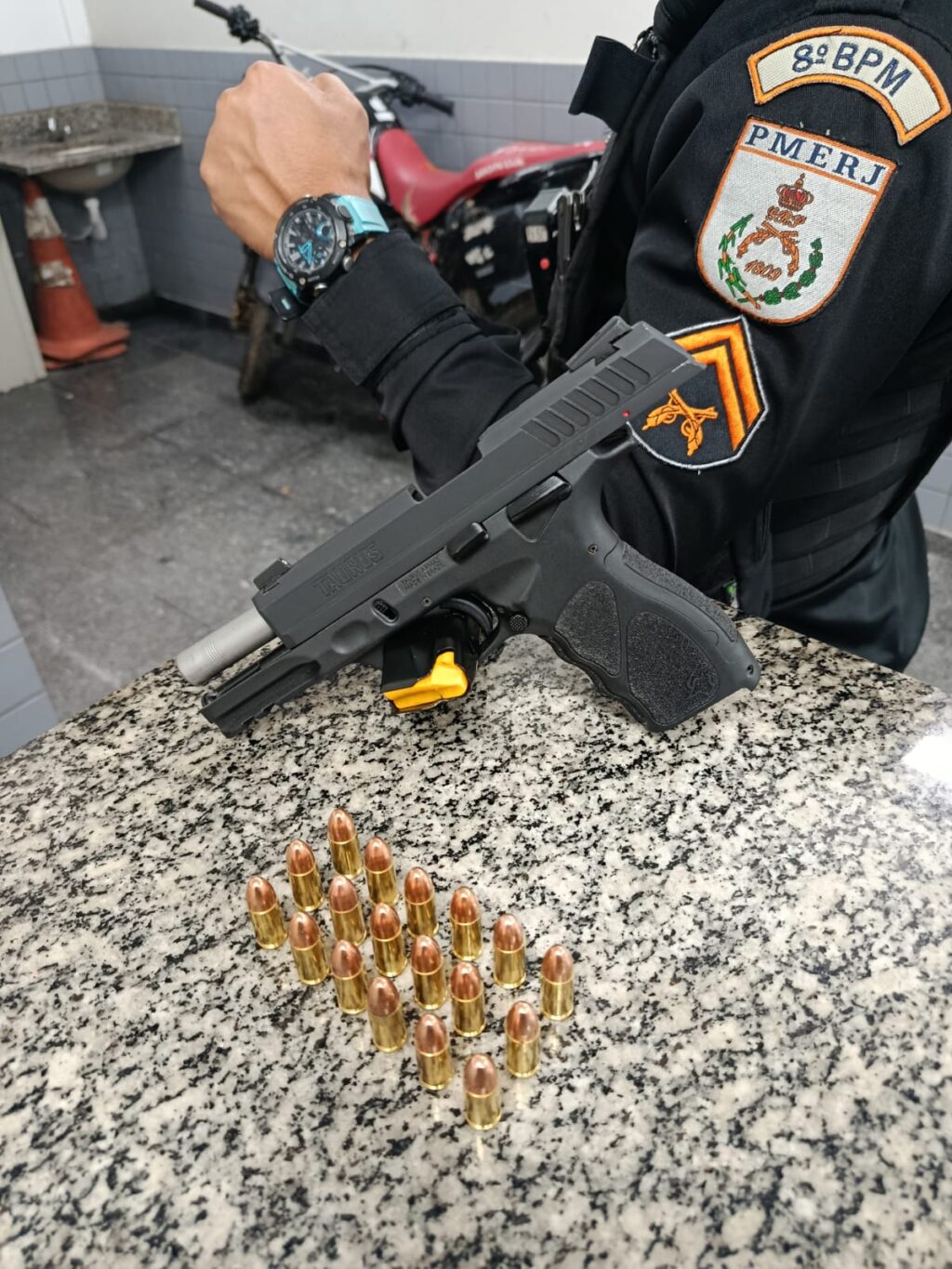 De acordo com a Polícia Militar, equipes da Moto Patrulha VI, GAT II/2 e GAT I/1 abordaram um veículo Corolla branco na Avenida Friburgo, no Parque Guarus. Durante a ação, o motorista se identificou como militar do Exército e apresentou uma pistola que estava na cintura. Ele também entregou uma carteira funcional e um certificado de registro de arma de fogo (CRAF), ambos com indícios de falsificação.