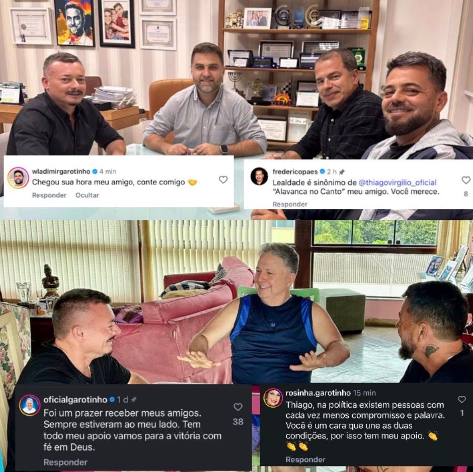 As movimentações políticas rumo a 2026 ganharam novo impulso com as declarações públicas de apoio à pré-candidatura de Thiago Virgílio a deputado estadual. O gesto veio de quatro grandes nomes da política campista e fluminense: o prefeito Wladimir Garotinho, o vice-prefeito Frederico Paes, o ex-governador Anthony Garotinho e a ex-prefeita Rosinha Garotinho.