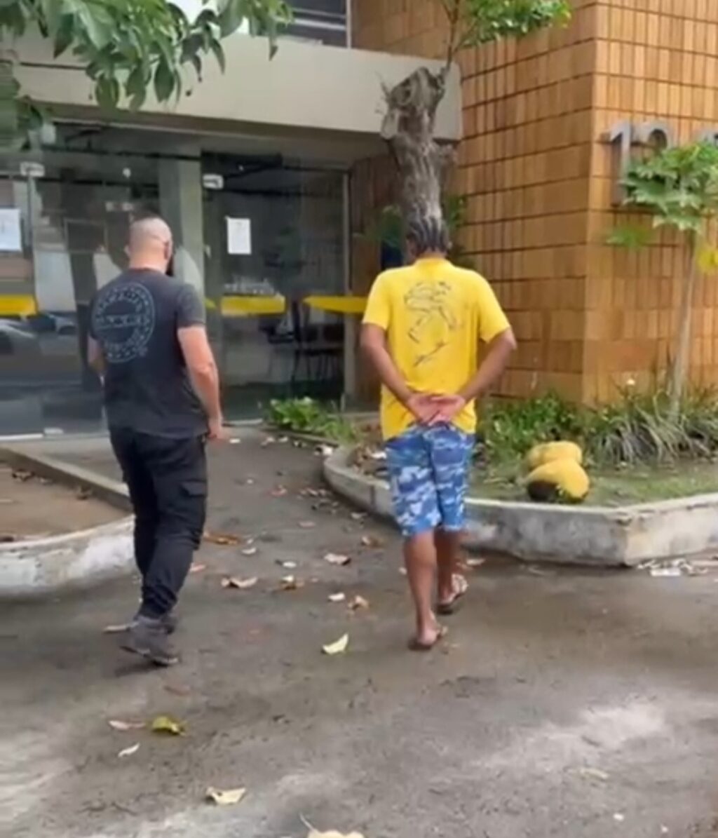Após buscas, R.G.C.C. foi localizado no bairro Turf Club e detido sem resistência. Ele foi levado para a DEAM, onde foi autuado em flagrante por lesão corporal e ameaça, conforme a Lei Maria da Penha.