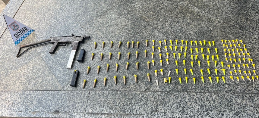 Na manhã desta terça-feira (02), equipes da Polícia Militar apreenderam uma submetralhadora e uma quantidade de cocaína durante uma ação em uma área de mata na localidade de Martins Lage, em Campos dos Goytacazes.
