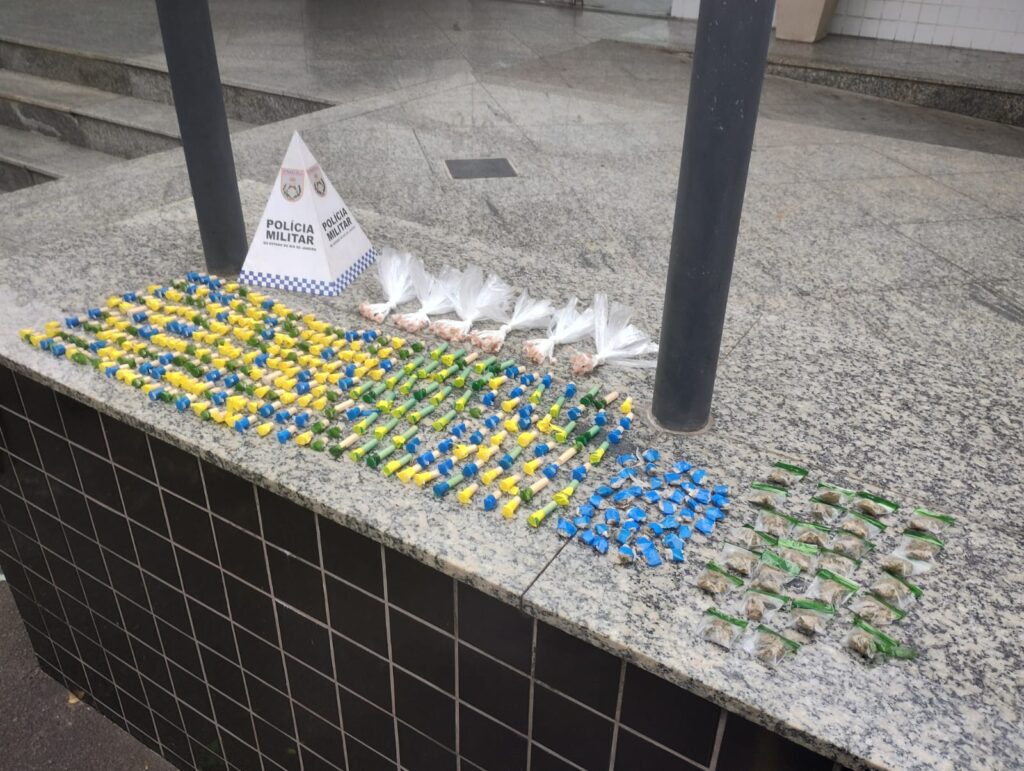 Durante uma entrada estratégica na comunidade, policiais realizaram buscas em uma área de mata e localizaram materiais que, segundo a PM, estavam prontos para comercialização. Ao todo, foram apreendidos 304 pinos de cocaína, 84 pedras de crack e 68 buchas de maconha.