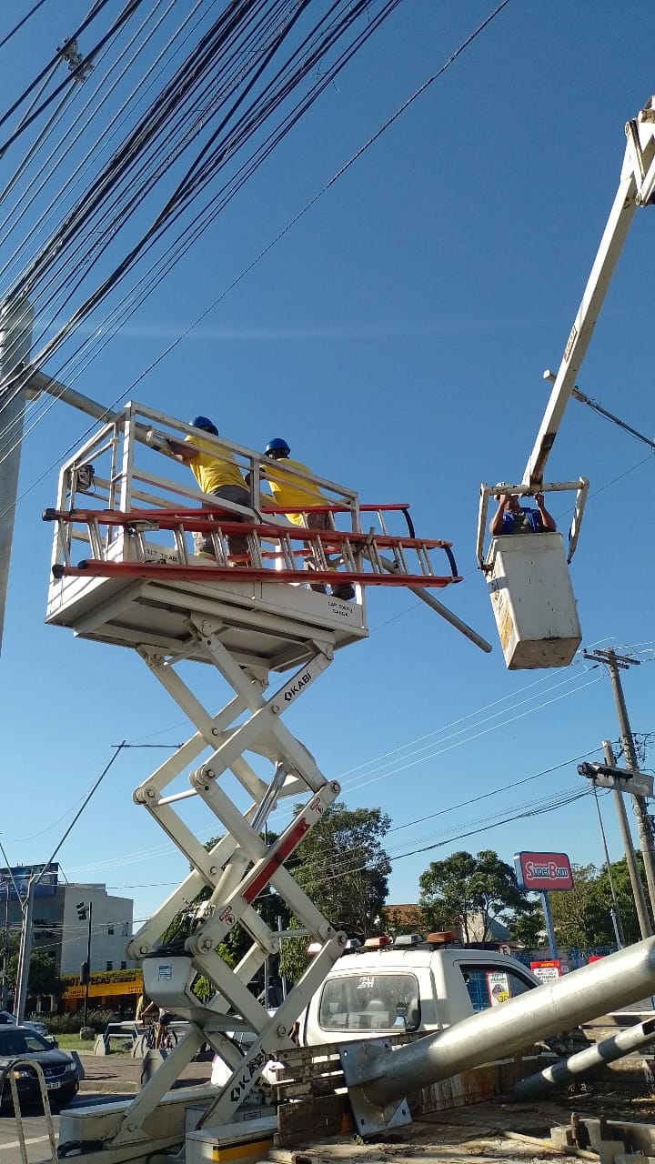 Nesta segunda-feira (29) foram iniciadas as instalações de colunas e blocos de semáforos no cruzamento das Avenidas 28 de Março e Av. Dr. Felipe Uebe. A chegada dos materiais necessários foi acompanhada pela equipe técnica do IMTT durante o plantão de Natal, com o objetivo de acelerar a instalação.