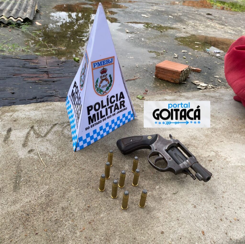 Com ele, os policiais apreenderam um revólver Rossi calibre 38 com numeração suprimida, cinco munições intactas, além de uma bolsa contendo mais quatro munições do mesmo calibre.