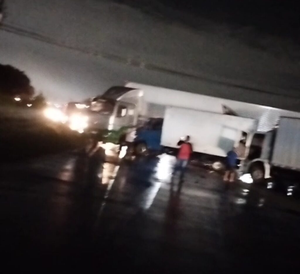 Um acidente envolvendo duas carretas e dois caminhões causou lentidão no trânsito da BR-101, na altura do km 68, em Campos dos Goytacazes, na noite desta sexta-feira (23). Duas pessoas ficaram feridas.