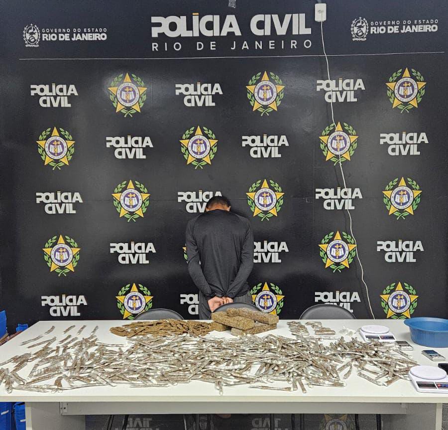 Contra o criminoso havia mandado de prisão preventiva em aberto, expedido pela 1ª Vara Criminal de Macaé, pelo crime de tráfico de drogas. O preso e todo o material apreendido foram conduzidos à 123ª DP, ocasião em que o autor foi autuado em flagrante.