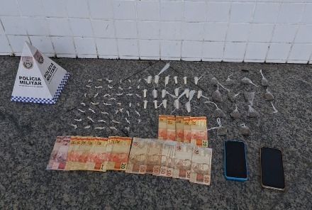 Com eles, os policiais encontraram sete pinos de cocaína, R$ 542 em dinheiro e um telefone celular.